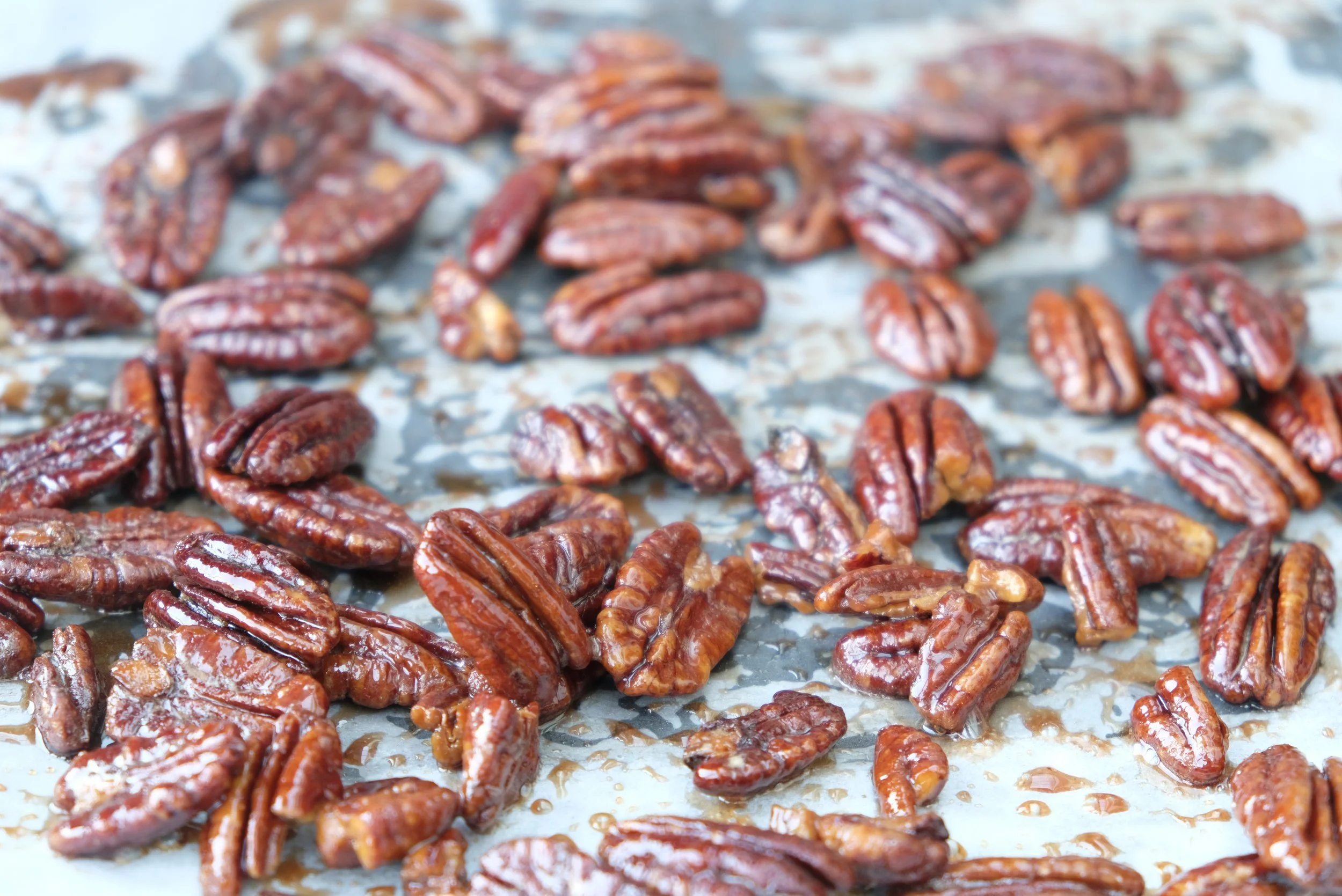 Mijn zoektocht op het internet naar de beste manier om pecannoten te karamelliseren eindigde bij Rutger bakt. Dit is zijn recept en het levert echt heerlijke krokante noten op.