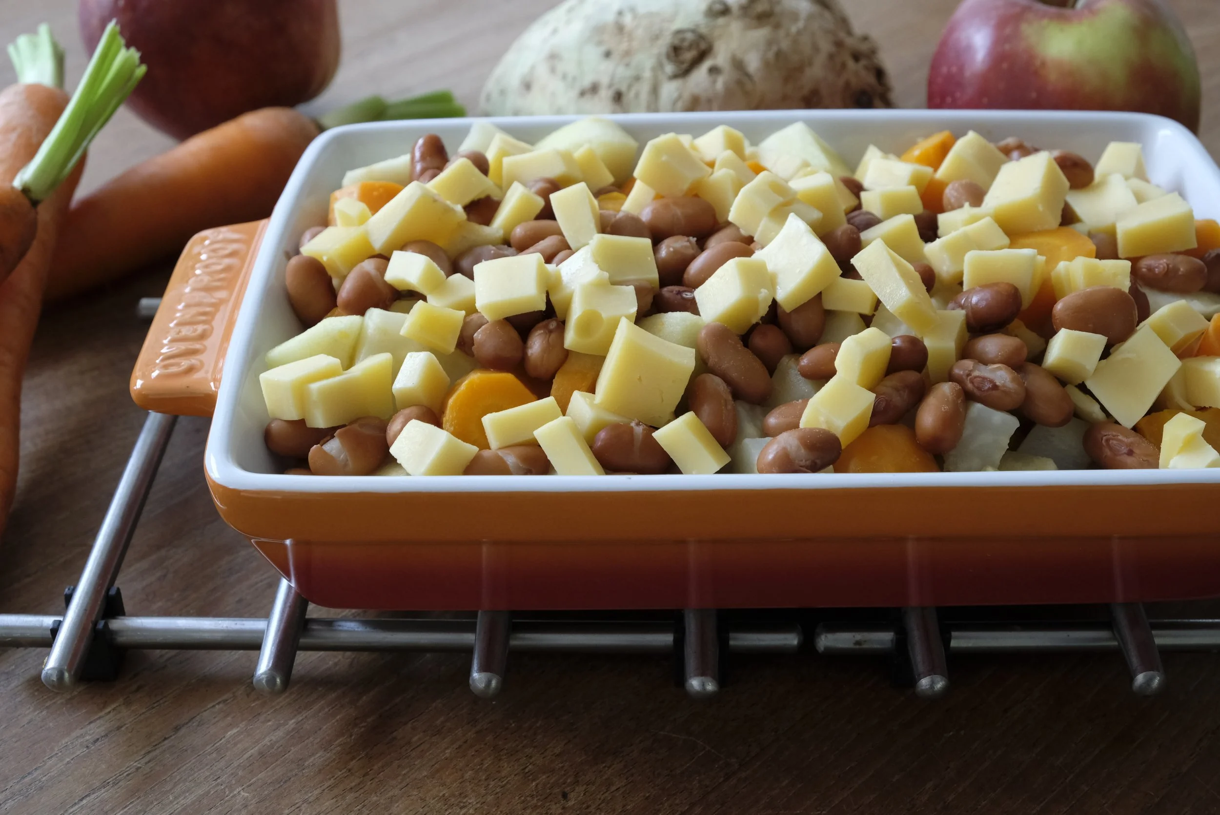 Een gerecht waar je restjes van allerlei groenten goed in kwijt kunt. Vervang bijvoorbeeld de wortelen door pastinaak, schorseneren of maak er een mix van. De aardappelpuree door aardappel- met knolselderijpuree. De bruine bonen door kidneybonen en mais enzovoort. Heb je weinig tijd dan kan kant en klare aardappelpuree natuurlijk ook.