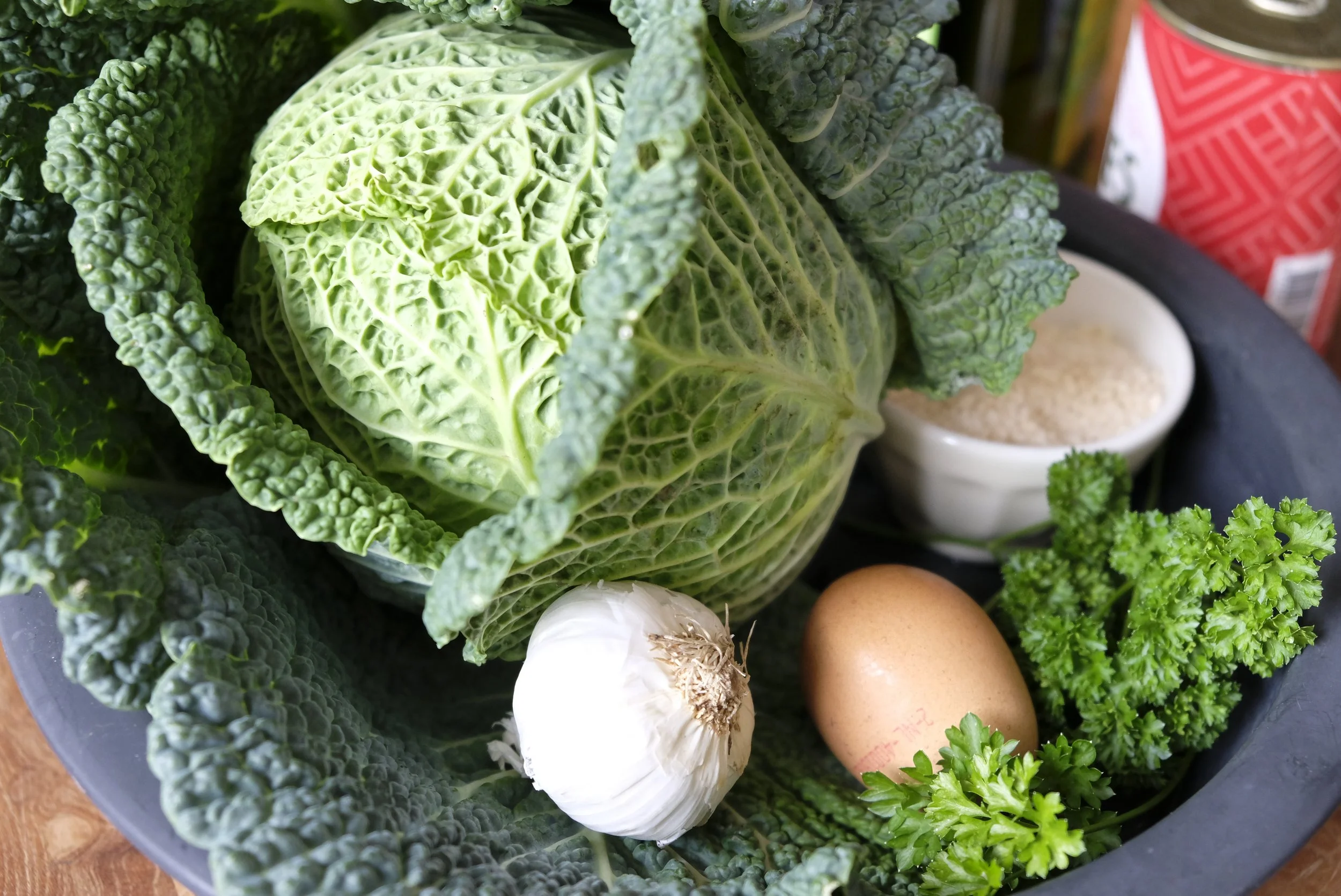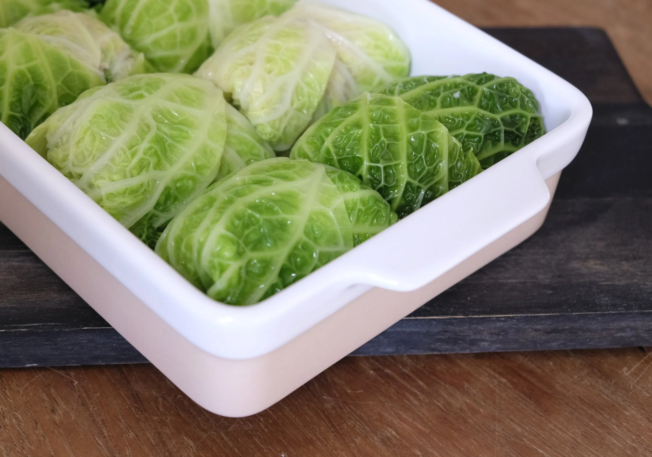 Blancheer de koolbladeren 1-2 minuten tot ze soepel genoeg zijn om rond het vlees te wikkelen.